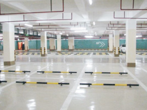 對于平整地面,可采用0.6㎜普通停車場環氧地坪漆,而平整度及表面強度較差的地面,可以采用1~3㎜停車場環氧地坪漆,高級要求可采用2~3㎜環停車場環氧地坪漆;顏色可設計成灰色、藍色、綠色等。 2、車行通道 由于車行頻繁,相對于停車區,設計要加強,可采用1~3㎜停車場環氧地坪漆或2~3㎜停車場環氧地坪漆,顏色通常為綠色,車行通道寬度根據現場情況設置,通常雙向行車道不宜低于6米,單向行車道不宜低于3米,人行通道為1.5~2米,通道兩側劃中黃色標志線,線寬8~12㎜。 3、車行標志 通道內可采用黃色或白色標志漆(可采用夜光劃線漆)畫箭頭進行標明車行方向及指向各停車區,如A停車區、B停車區及C停車區等。 4、停車位設置 按停車場地面區域結構設置停車位,小轎車通常可設計為寬2.5~3.0米、長5~6米,停車位采用黃色或白色標志線畫出,標線寬8~12㎜。